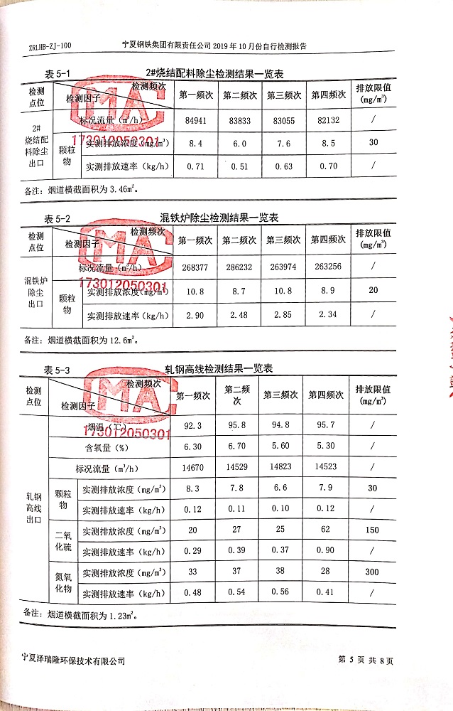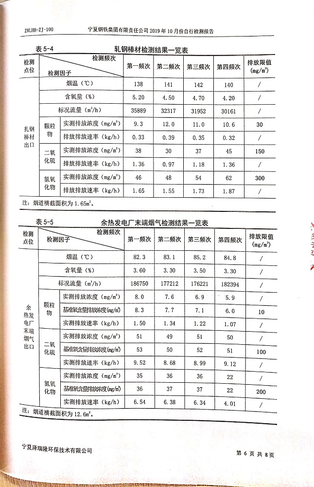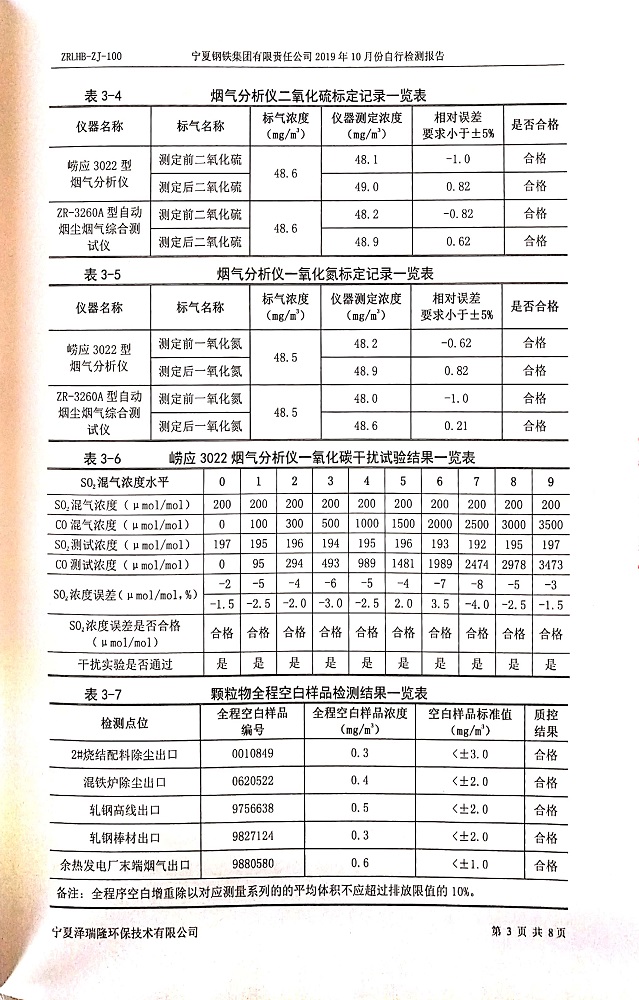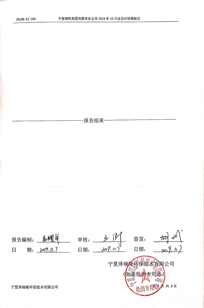 寧鋼2019年10月份自行檢測(cè)報(bào)告