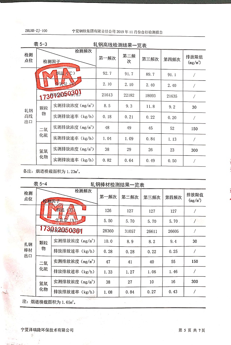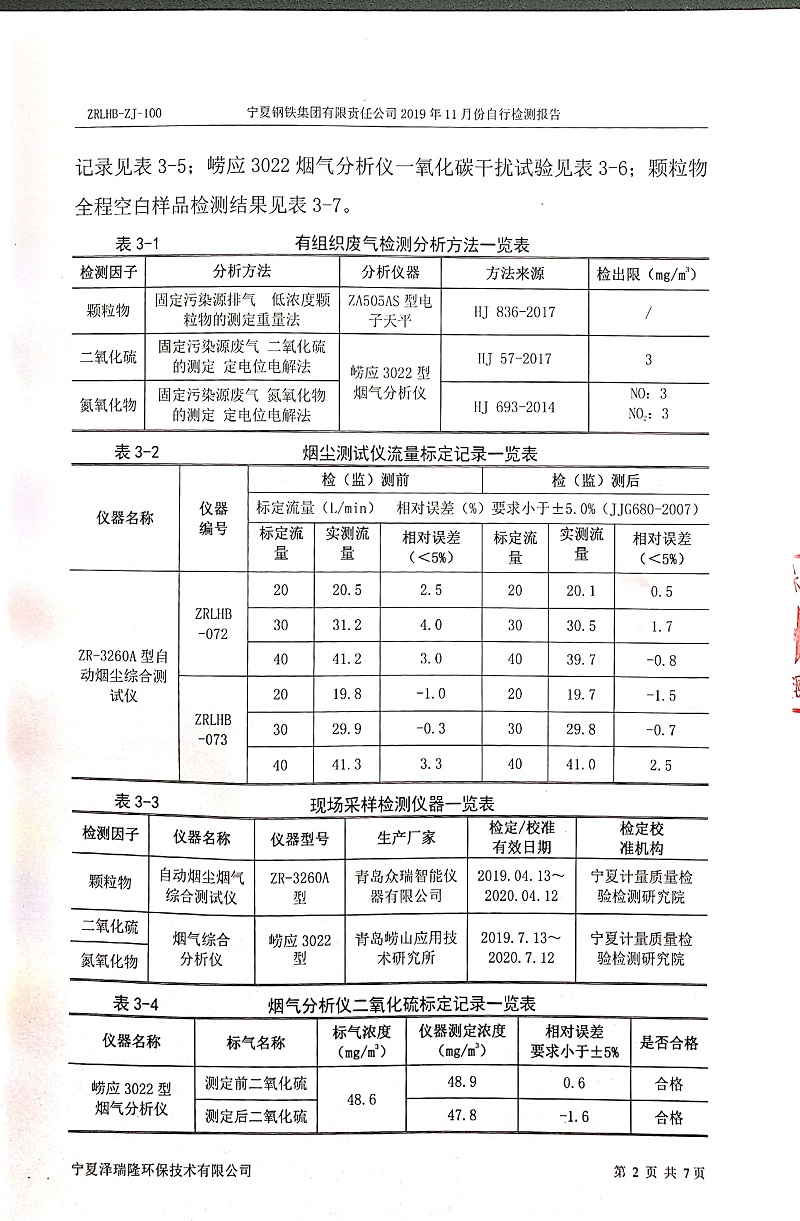 寧鋼2019年11月份自行檢測報(bào)告