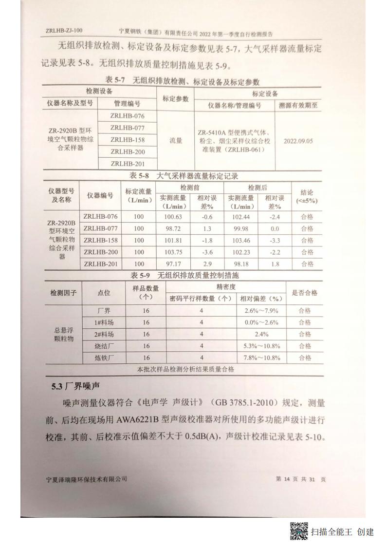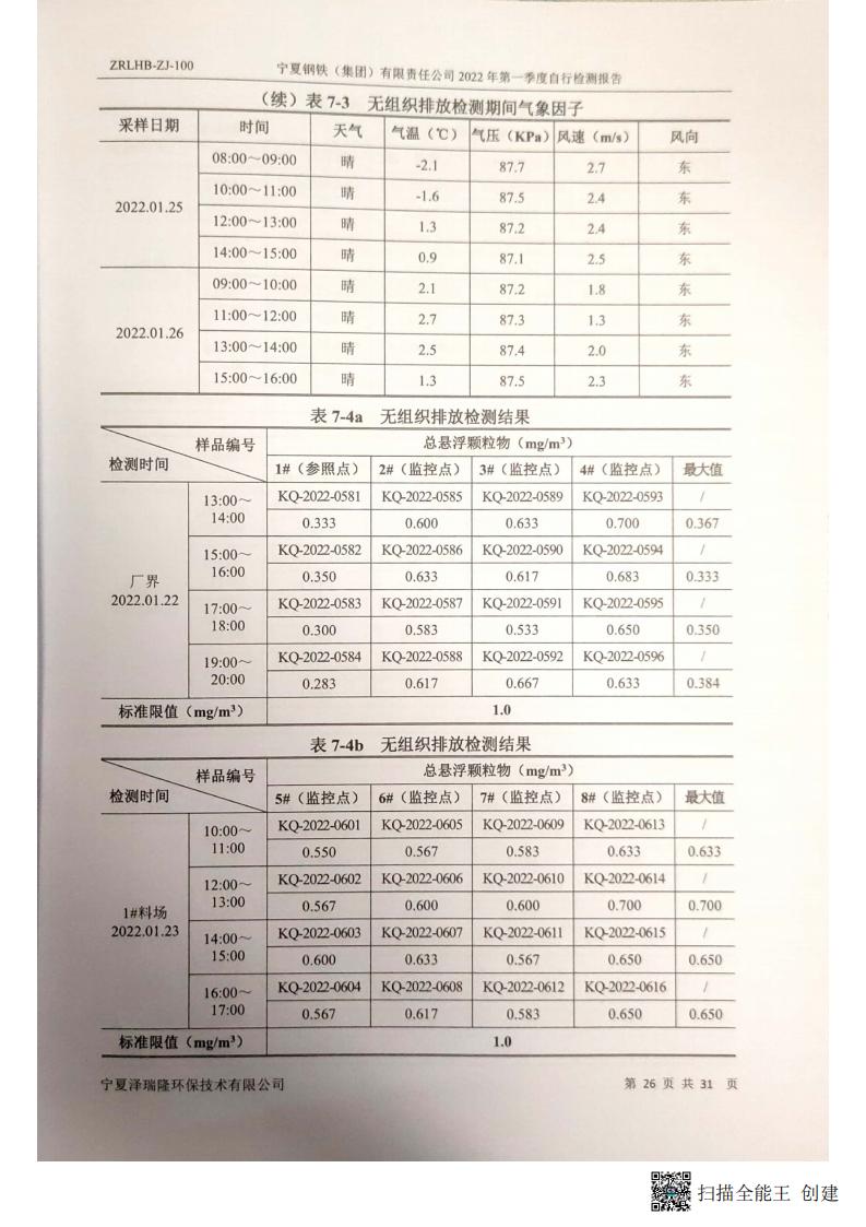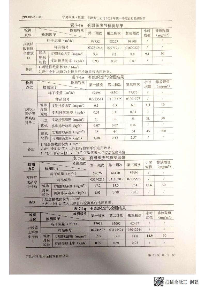 2022年第一季自行檢測(cè)報(bào)告