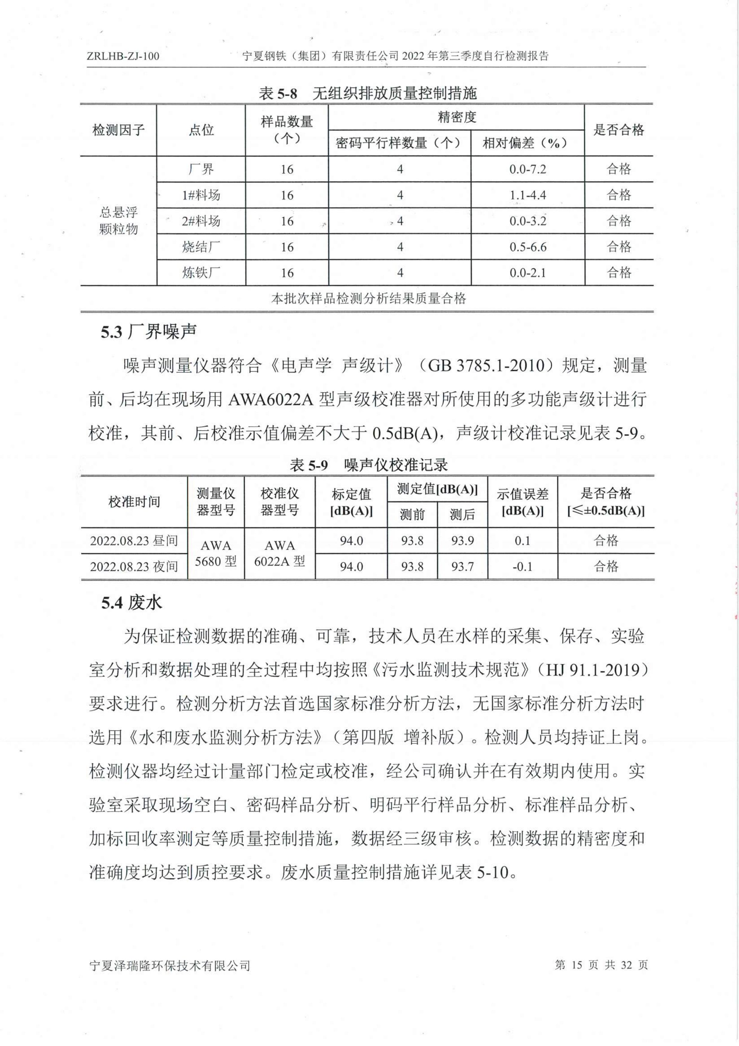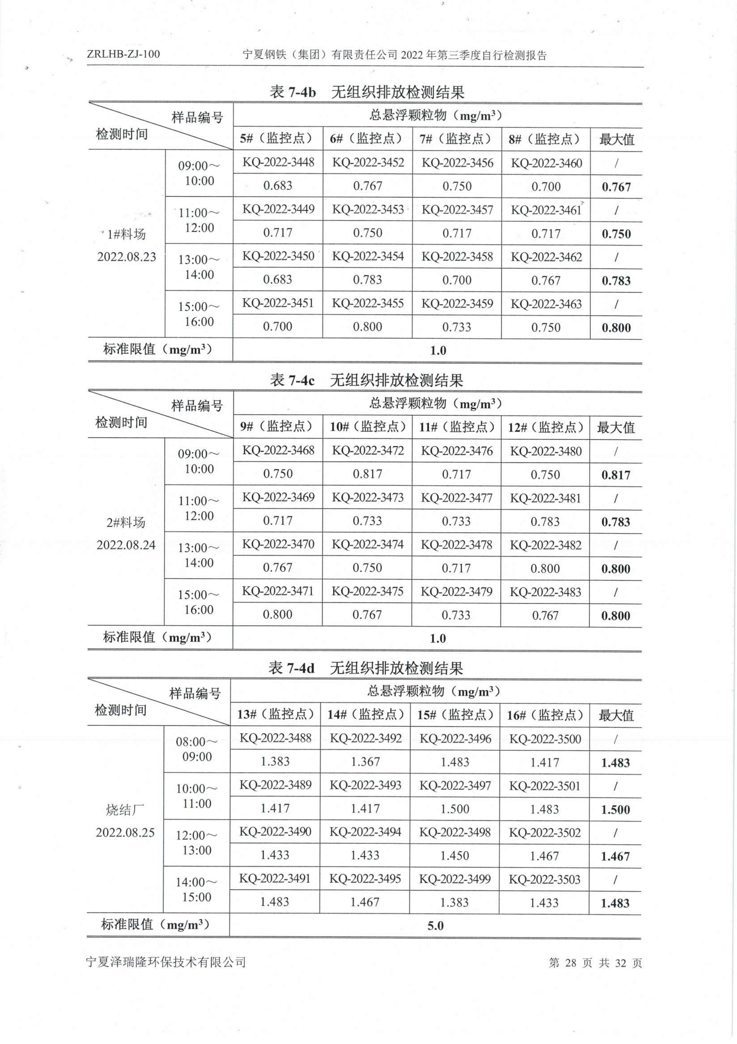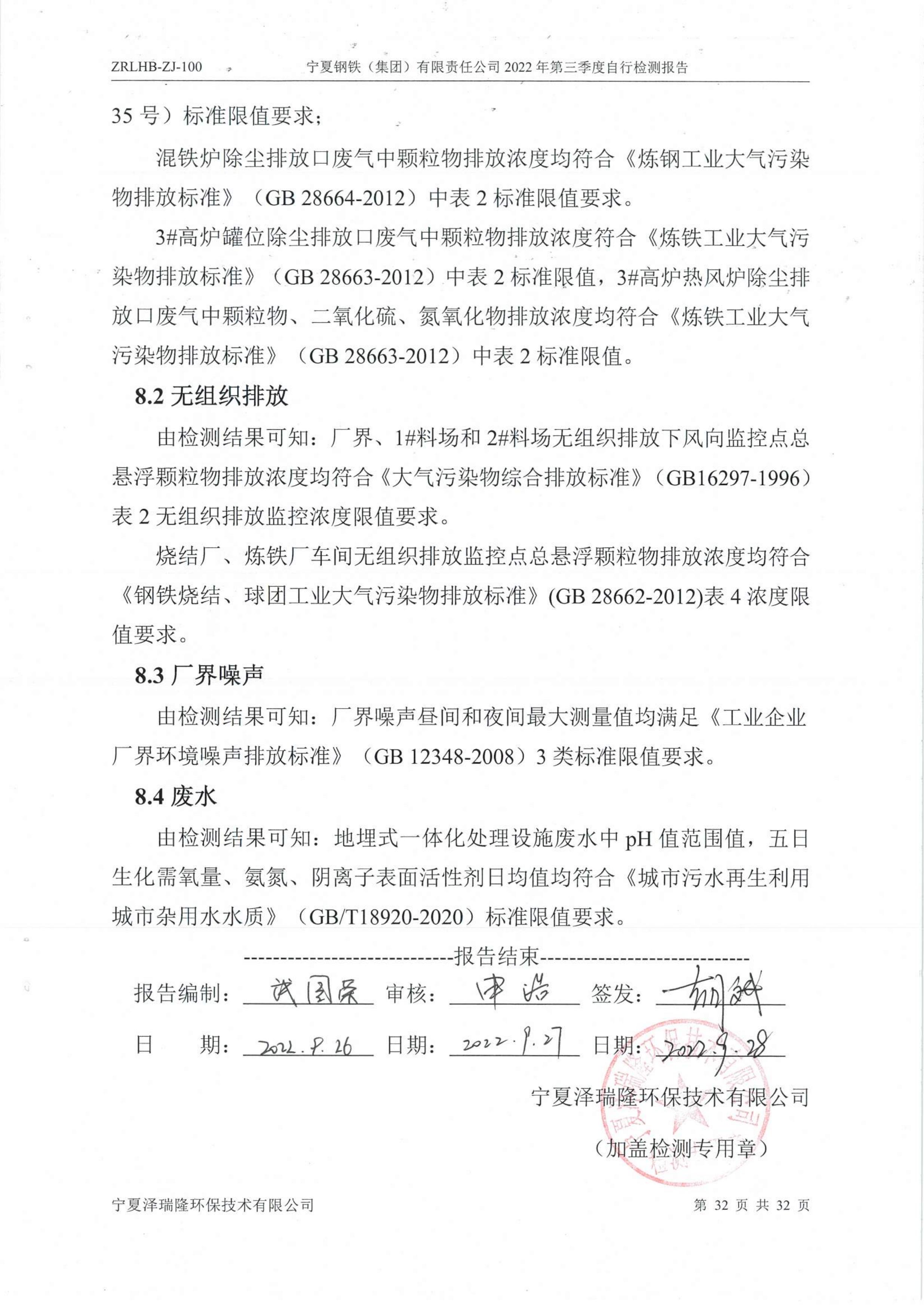 2022年第三季度自行監(jiān)測(cè)報(bào)告
