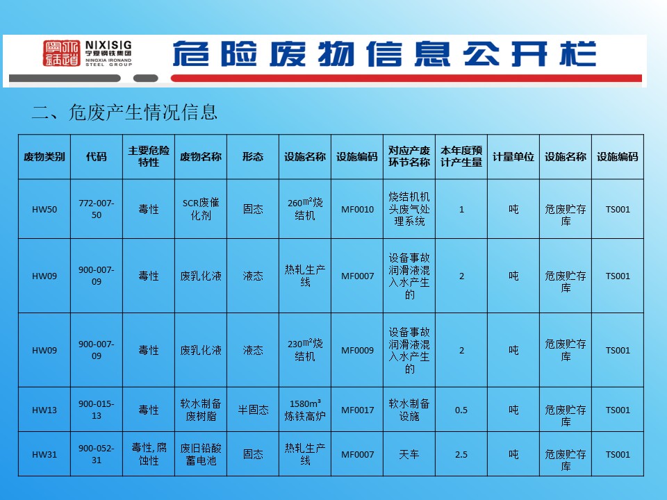 寧夏鋼鐵危險(xiǎn)廢物信息公開