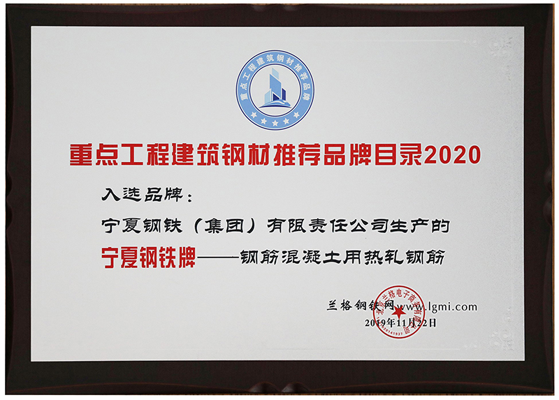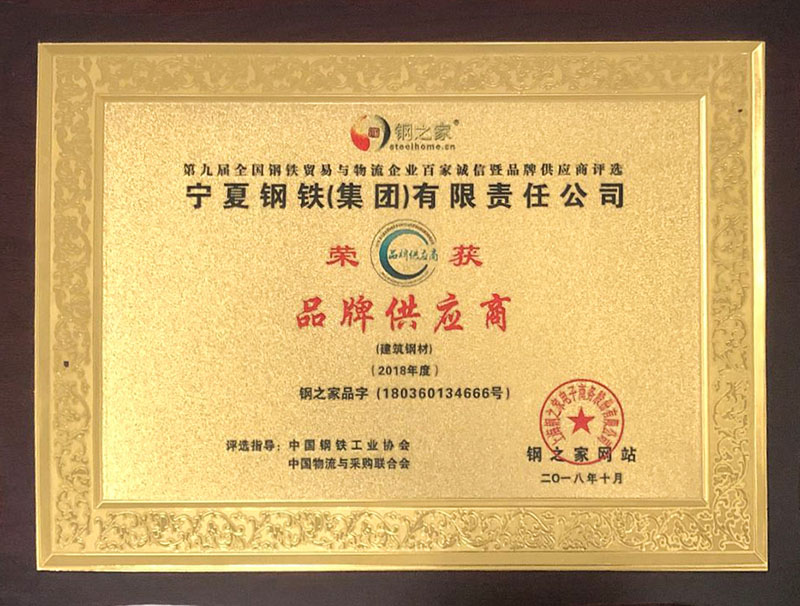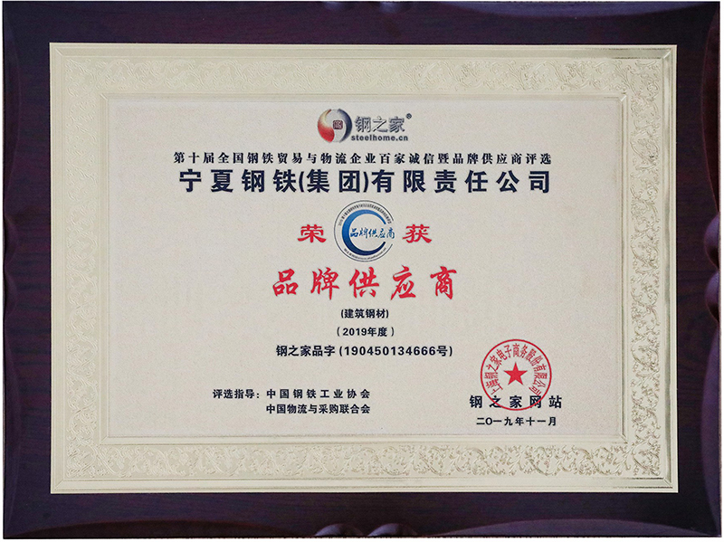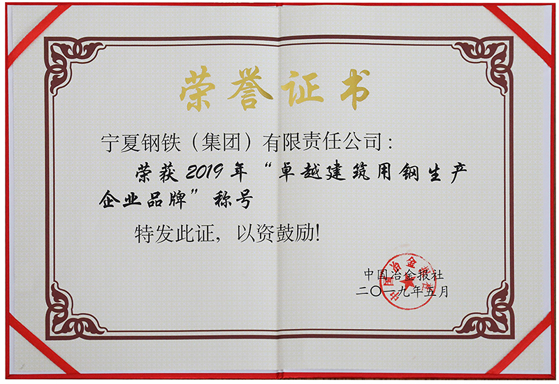 2019年度全國優(yōu)質(zhì)建筑用鋼品牌·創(chuàng)新發(fā)展獎