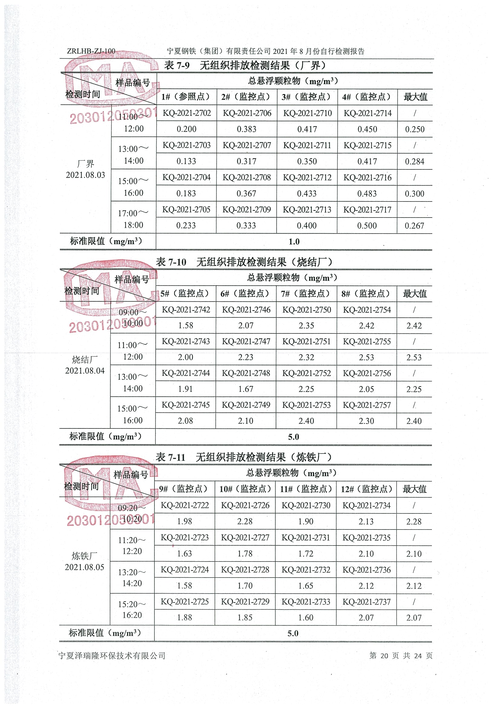 2021年8月份檢測報告