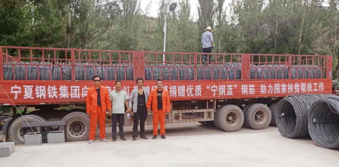 該批鋼筋8月6月從寧夏鋼鐵集團(tuán)庫(kù)房出發(fā),于8月7日到達(dá)甘肅省禮縣灘坪鎮(zhèn),現(xiàn)場(chǎng)工作人員直接將鋼筋卸到施工現(xiàn)場(chǎng),并立即開始基礎(chǔ)設(shè)施建設(shè)。寧鋼產(chǎn)品以其優(yōu)質(zhì)、潔凈、耐銹一度被親切的成為“寧鋼藍(lán)”,同時(shí)庫(kù)房到工地的一站式服務(wù)也深得西北市場(chǎng)的青睞。質(zhì)量是企業(yè)的生命,文化則引領(lǐng)寧鋼人踐行對(duì)社會(huì)的責(zé)任與擔(dān)當(dāng),多年以來,寧夏鋼鐵集團(tuán)參與公益事業(yè)救助人員347人,救助資金887萬元,在公益的道路上,寧鋼藍(lán)將隨著寧鋼人走的更穩(wěn)更遠(yuǎn)!